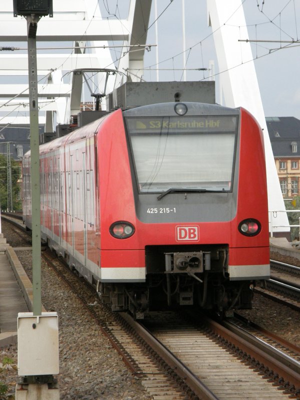 ET 425 215 fährt als S3 nach Karlsruhe Hbf in Richtung Mannheim über die Rheinbrücke bei Ludwigshafen Mitte am 16.07.2008.