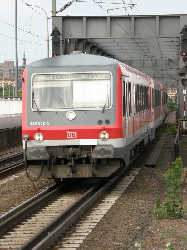 VT 628 602 fährt aus Richtung Mannheim in den Bahnhof Ludwigshafen Mitte ein. (16.07.2008)
