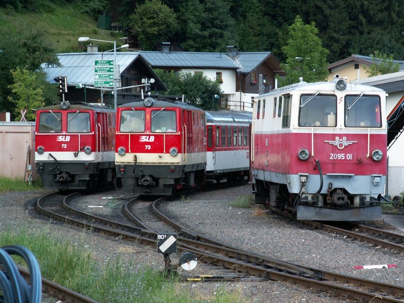 Blick in die Zf Tischlerhäusel mit den SLB Loks 2095.01(71), 72 und 73 (2095 004+006) am 6.8.08