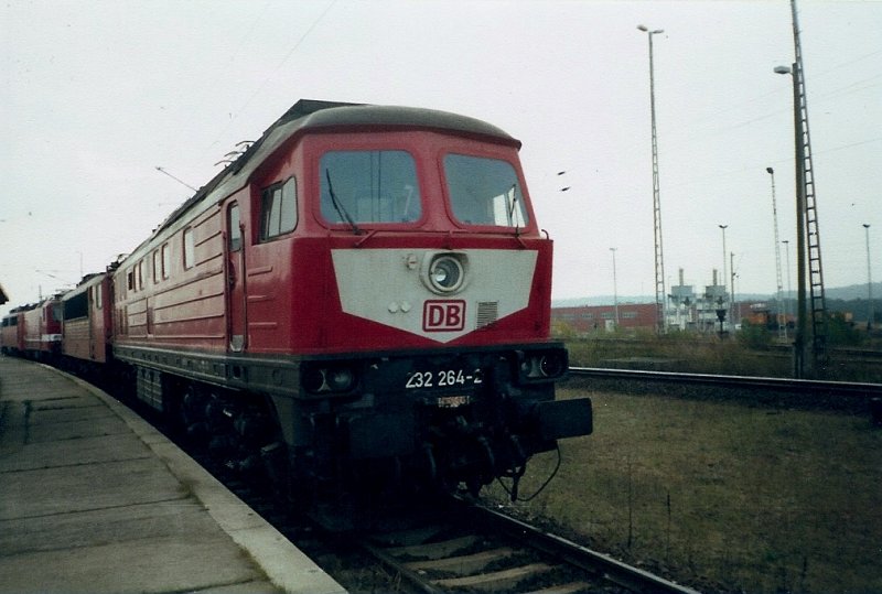 Die Seddiner 232 264 im November 1999 am ehmaligen Haltepunkt Mukran-Mitte.Die Lok stande auch schon auf dem großen Lokfriedhof in Mukran aber Sie hatte noch mal Glück gehabt und ist jetzt als 233 264 wieder im Einsatz.