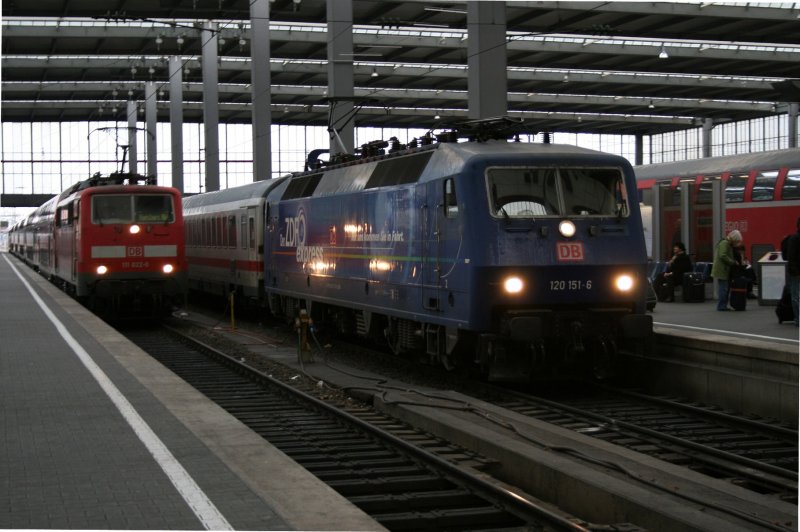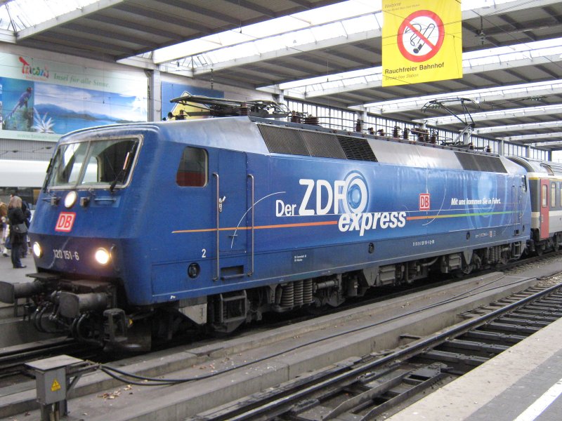 BR 120 151-6 "Der ZDF Express" wartet im HBF München auf ihren nächsten Einsatz. 20.12.2008