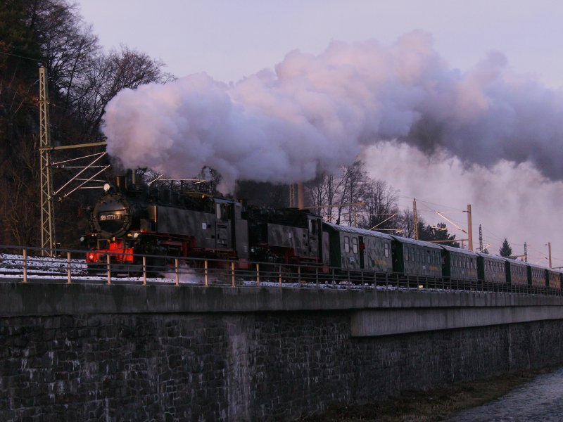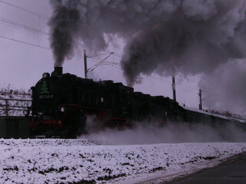 Am 21.12.08 waren 50 3648, 52 8079 und als Highlight 119 158 Richtung Annaberg unterwegs.