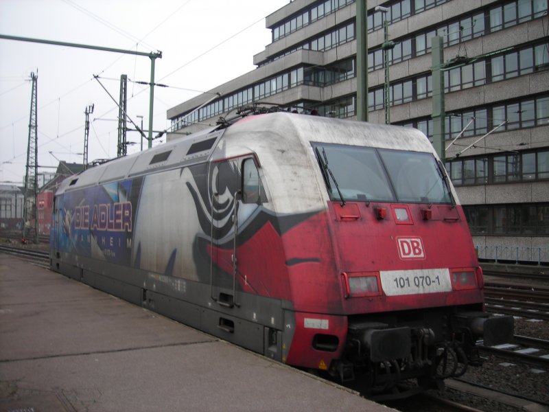 101 066-9 mit IC 2048 nach Köln kurz nach der Ausfahrt aus Magdeburg Hbf am 30.12.2008.