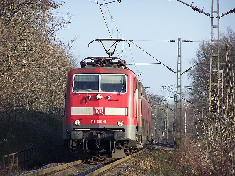 111 150-9 fährt bei herrlichem Winterwetter als RE4(10414) in Hückelhoven-Baal ein. 28.12.08