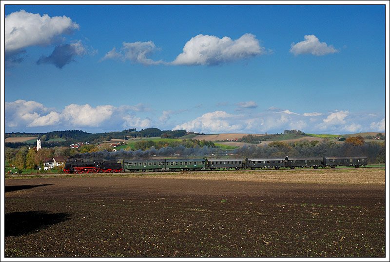 Fotozug mit 2048 018 der SLB auf der ÖGEG Strecke zwischen Timelkam und Ampflwang am 4.10.2008 bei Wolfsdoppel aufgenommen.