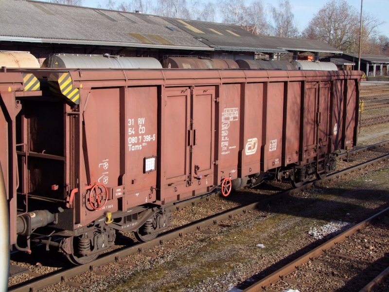 Ein Großraum Schiebewandwagen Bauart Habbiillns von Transwaggon. Eingereiht im CSQ 49829 nach Milano am 6.12.08 in Bad Oldesloe.