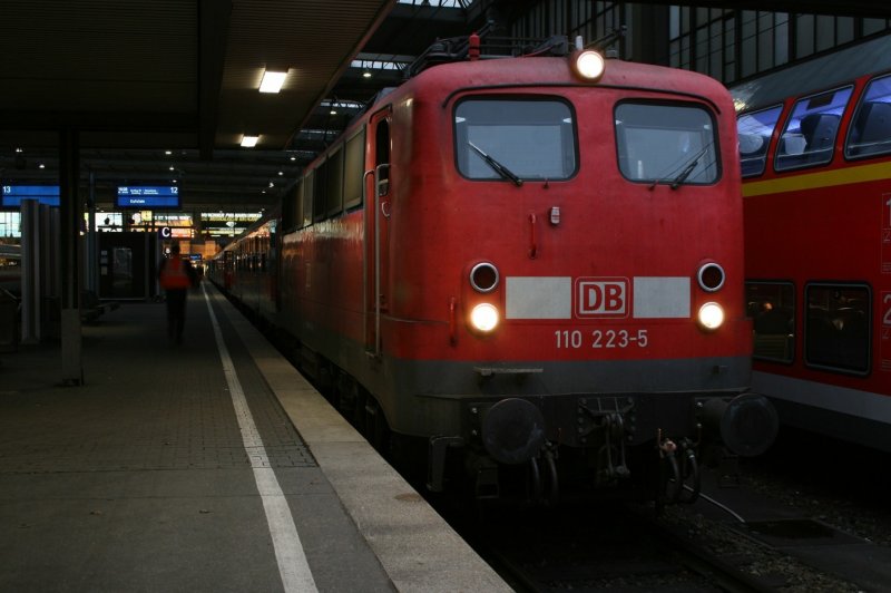 110 223 mit RE 30103 am 10.12.2008 in München Hbf.