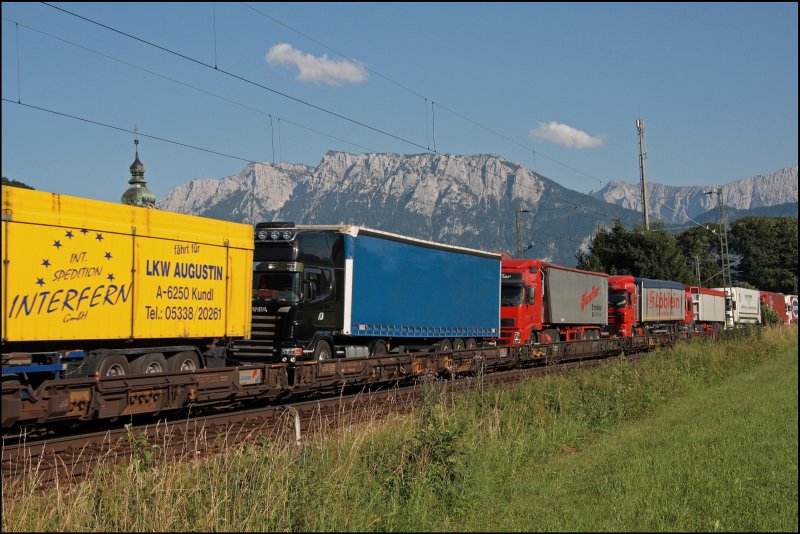 Eine nicht alltägliche Fracht beförderte 1670.09, welche in Saalfelden beheimatet ist, am 6.10.2008 von Wien West nach Linz. Im Gepäck hatte sie 1016.046, 1142.566, 2020.001, 40 81 944 0 832-9 (Wohnwagen) und den HZ-Gerätewagen 80 81 975 6 917-7. Aber keine Angst, die Fahrzeuge wandern nicht in den Hochofen. 2020.001 soll äußerlich aufgearbeitet werden, und auch 1142.566 geht nicht den Weg des alten Eisen, und wird auch in Zukunft noch auf österr. Schienen unterwegs sein. Wäre auch schade um diese Maschine, bekam sie doch erst vor rund 2 Jahren einen alten Neulack. Die Aufnahme zeigt den SGAG 95796 in Hofstatt am Anzbach auf der Westbahn kurz vor Neulengbach