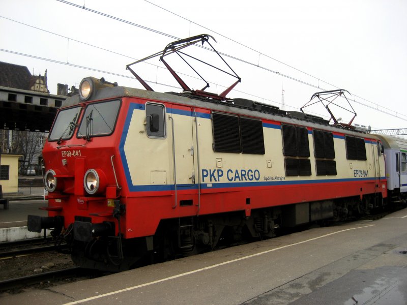 Die ES 64 U2-041 am 02.02.2007 bei der Ausfahrt aus Salzburg HBF.