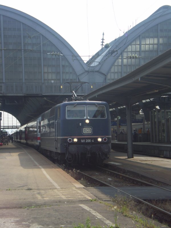 181 206 steht mit einem EC bereit zur Fahrt nach Strasbourg.