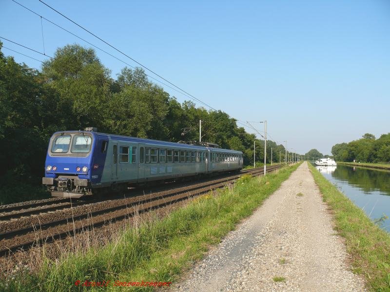Hier in Steinbourg verlaufen die Vogesenstrecke und der Rhein-Marne-Kanal direkt parallel.