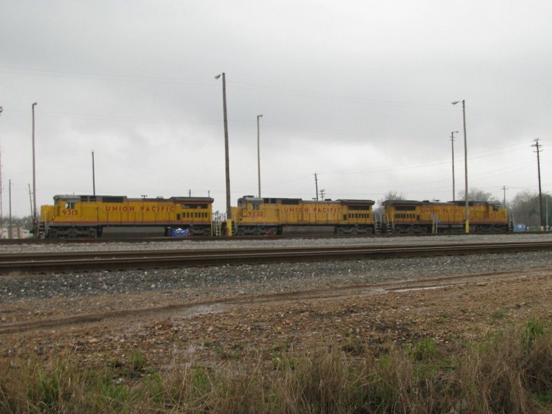 Drei UP Loks sind am 21.2.2008 in einem Betriebswerk der UP in Houston (Texas) abgestellt.