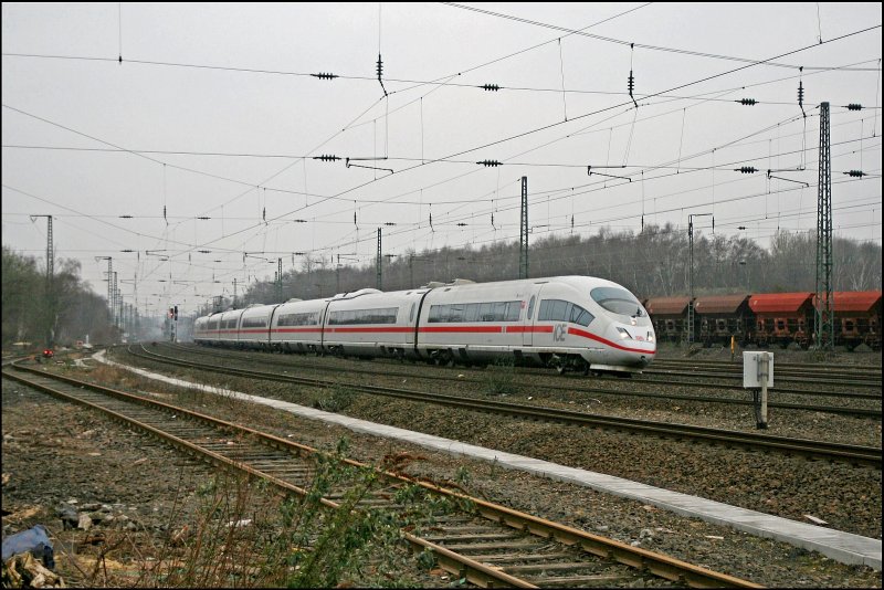 403 062/562 und 403 010 "Wolfsburg" hat als ICE 614 von München Hbf nach Dortmund Hbf sein Ziel bei Bochum-Ehrenfeld fast erreicht. (24.02.2008)