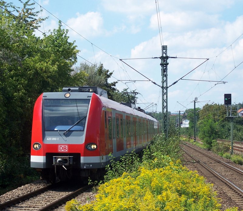 423 810 + 423 xxx als S1 nach Plochingen bei der Einfahrt von Esslingen-Zell, Sommer 2007.