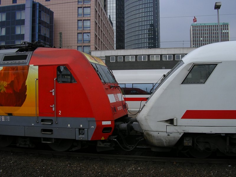 Detail ,BR 101 037 vor Steuerwagen gespannt des IC 2028 Passau-Hamburg , in der mitte ICE 3 aus München.(29.02.2008)