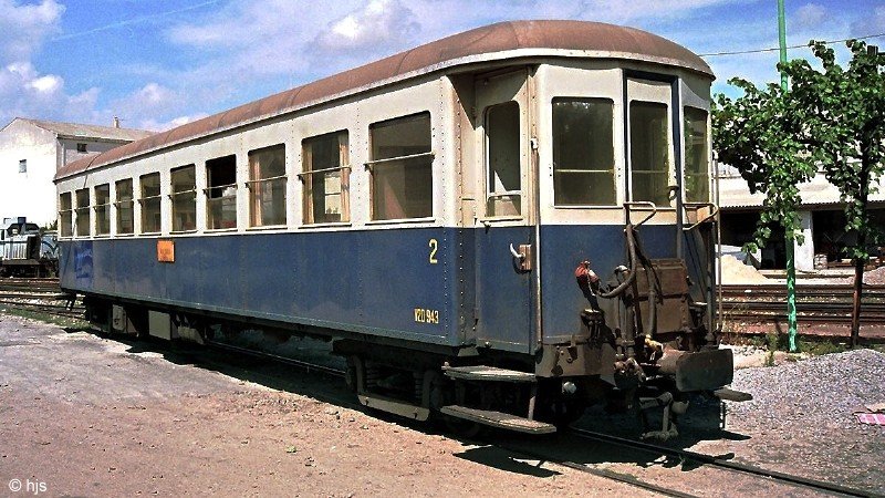 Wagen V2D 943 in Macomer FdS (12. September 1989). Der Wagen lief ursprünglich auf der Circumvesuviana.