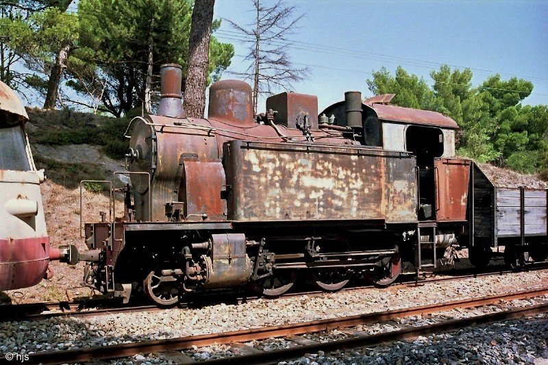 Wie so viele Bahnhöfe an den FdS-Strecken hat auch Macomer seine Schrottlokomotive. Hier handelt es sich um eine von sieben Lokomotiven (vermutlich Nr. 4), die Breda 1914 an die Ferrovie Complementari della Sardegna (FCS) geliefert hat (12. September 1989).