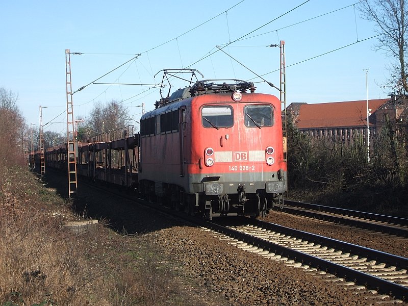 Blick auf eine BR140 die mit Ihrem Zug im Gbf Gelsenkirchen-Bismarck auf Ausfahrt wartet.   08.02.2008