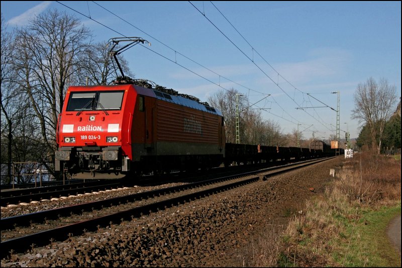Am 10.02.2008 zieht 189 079 eine Güterzug über die Kölner Südbrücke Richtung Neuss/Aachen.