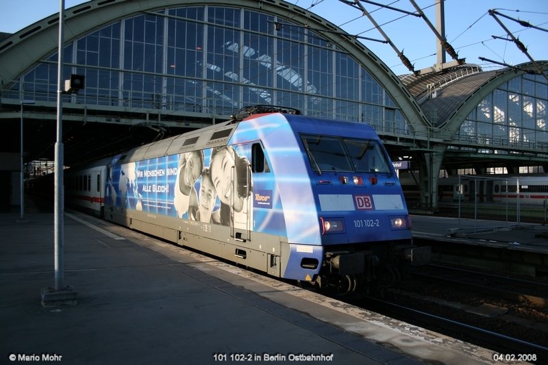 BR 101 102-2 "Wir Menschen sind alle gleich" mit IC 434 am Haken von Norddeich Mole nach Luxembourg , erreicht Gelsenkirchen Hbf.,Gleis 5.(14.02.2008)