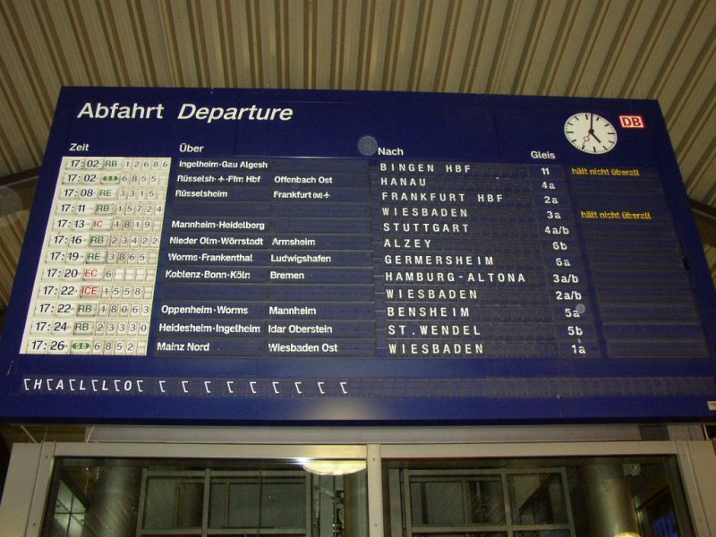 Anzeigetafelpaar von Gleis 10 + 11 in Frankfurt am Main Hbf. 11.02.08