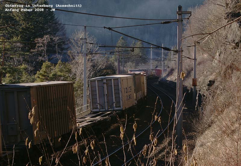 BR 185 124 und -141 mit GZ in der Wattingerkurve bei Wassen am 24.01.2008
