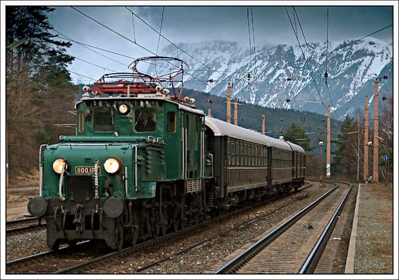 E-Lok 1189.02 ehem. BBÖ 1100.102 mit Nostalgiesonderzug von Wien nach Mürzzuschlag. Brennweite 17 mm KB