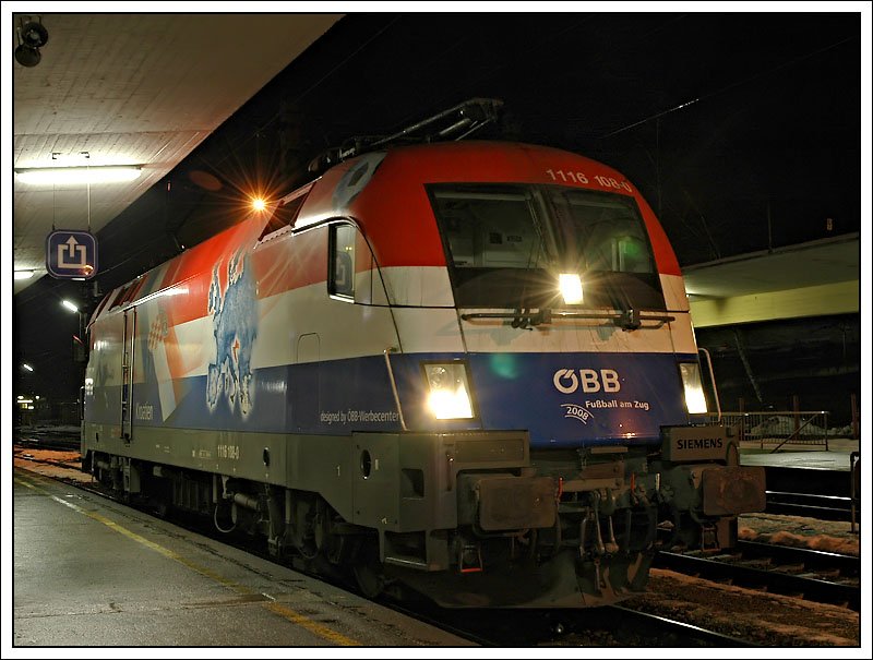 EM Lok 1116 005 Österreich fährt mit einem Sonderzug zum Nachtslalom nach Schladming