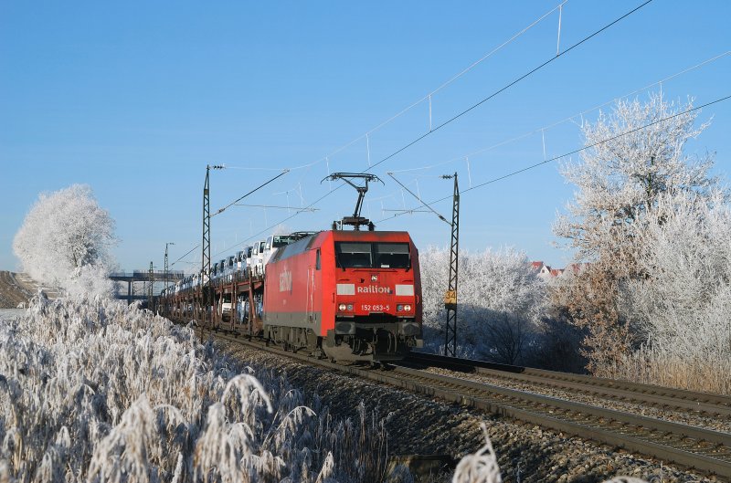 152 053 mit einem Güterzug bei Hattenhofen (29.12.2007)