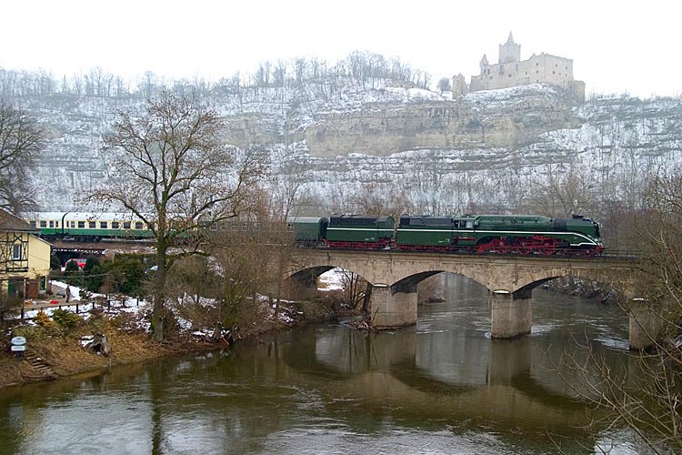 18 201 führt einen Sonderzug von Dresden nach Saalfeld und zurück.