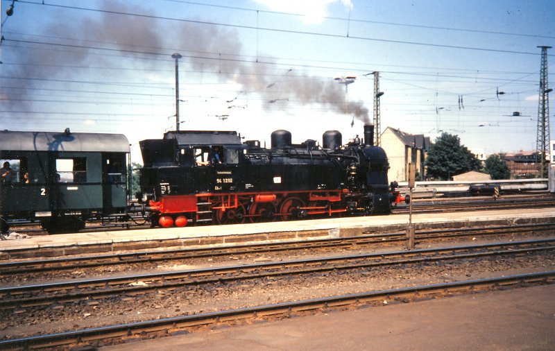 94 1292 bei der Ausfahrt aus Erfurt Hbf am 28. 7. 1991. Die Fahrt ging nach Erfurt-West-