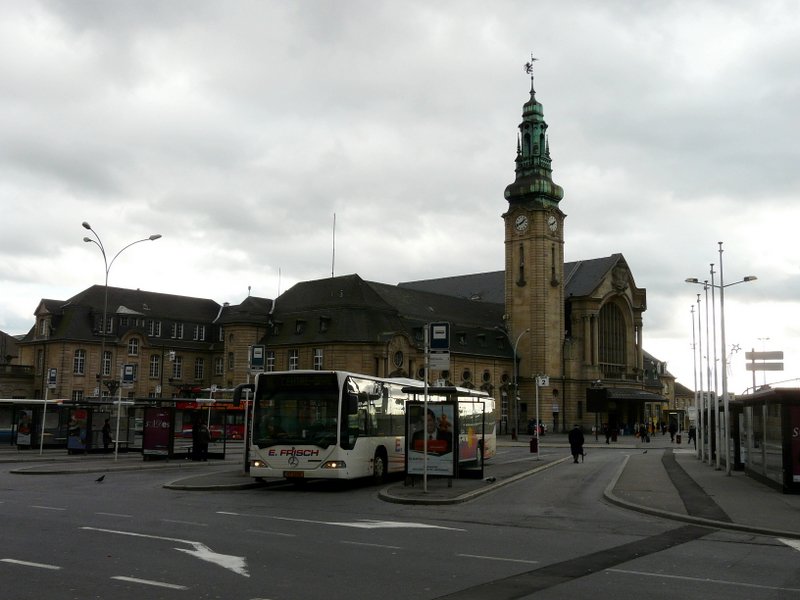 Das Bahnhofsgebäude von Luxemburg mit dem Bahnhof des städtischen Busbetriebes im Vordergrund. 20.01.08
