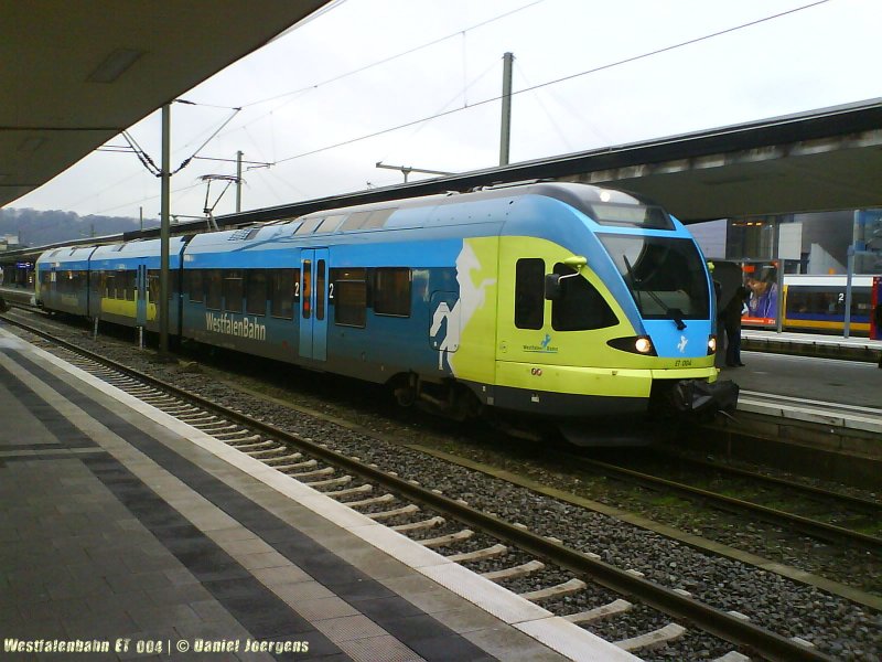 ET 004 der Westfalenbahn GmbH auf Gleis 3 - Abschnitt A-C im Bielefelder Hauptbahnhof.