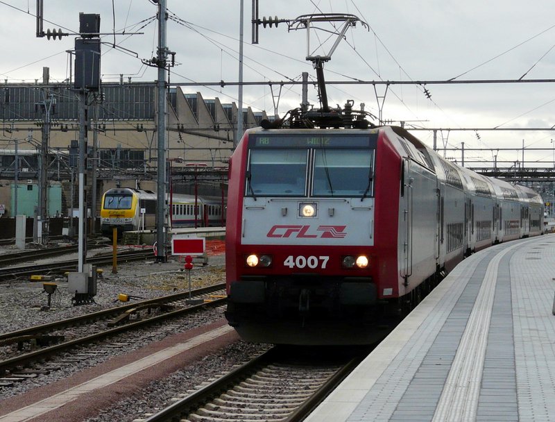 Lok 4007 verlässt den Bahnhof Luxemburg in Richtung Wiltz. Links im Bild steht Lok 3004 mit Zug bereit, um in Kürze den Bahnhof in Richtung Liège zu verlassen. 20.01.08