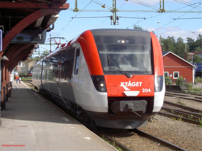 Neuer Triebzug der Midlinjen X51 204 "Bönan" von X-Trafik am 18.07.2006 in Sundsvall.