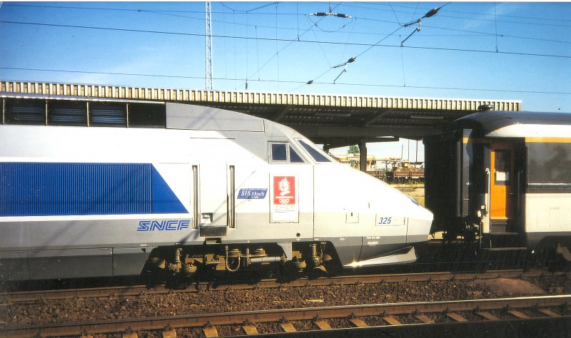 Noch ein Blick auf den TGV am 8. 7. 1991 in Berlin-Schönefeld (Flughafen)