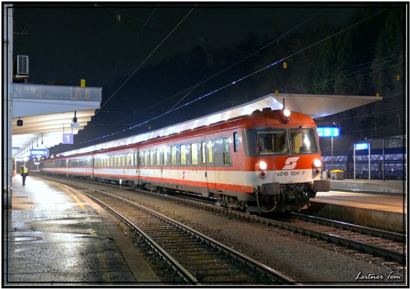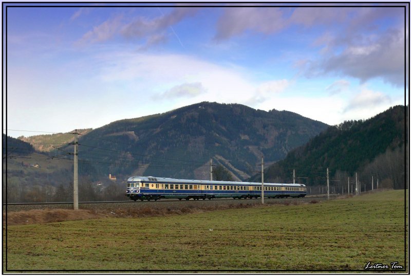 Nachschuß auf den Triebwagen VT 5145.011 der als Sonderzug von Wien nach Schladming zum Nachtslalom der Herren fährt.