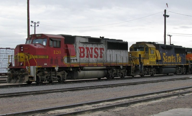Zwei BNSF Loks am 5.1.2008 in Phoenix (Arizona). Die Loks tragen verschiedene Santa Fe Lackierungen.