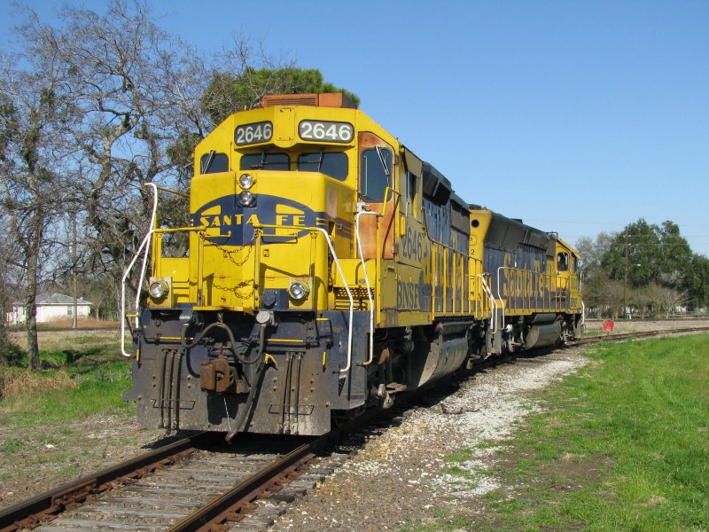 Zwei BNSF Loks mit Santa Fe Lackierung sind am 19.1.2008 in Sealy (bei Houston, Texas) abgestellt.