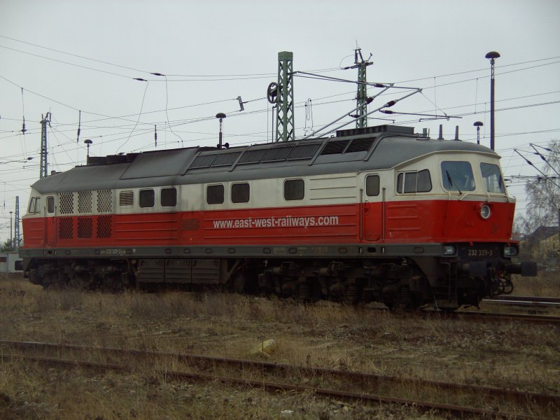 Aus Richtung Riesa kommend erreicht die "nackte" 189 094 den Bahnhof Falkenberg(Elster) mit einem leeren Rungenwagenzug. Sie fährt nun für die Veolia Tochter Teutoburger Waldeisenbahn (TWE), 23.01.08.