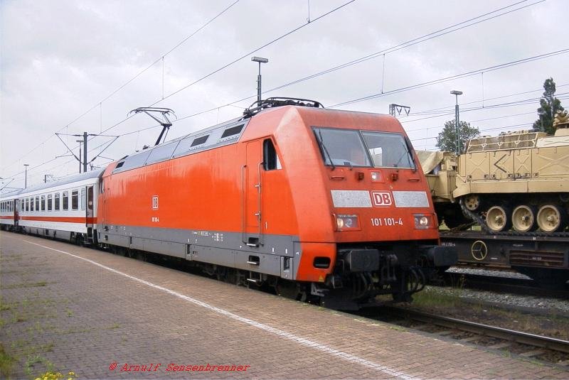 101-101 unterwegs mit IC von Köln nach Norddeich. In Emden-HBf wird die Wagengruppe nach Emden-Außenhafen abgehängt und uns anschließend -weiter als IC- mit 212-323 zum Außenhafen und zur Fähre nach Borkum bringen.