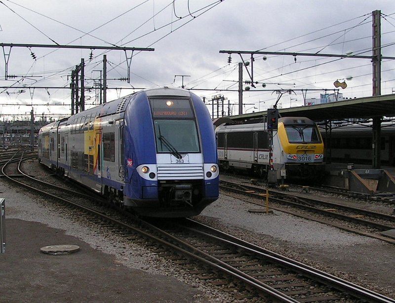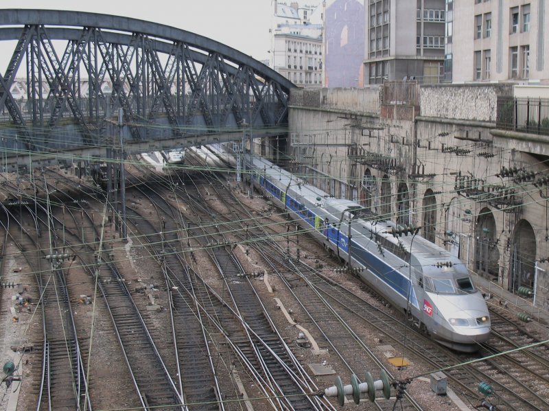 ICE und TGV in Paris Est am 21. Januar 2008. Immer wieder faszinierend und seit Jahren unverändert: die nostalgisch anmutenden Fahrleitungs - Querträger.