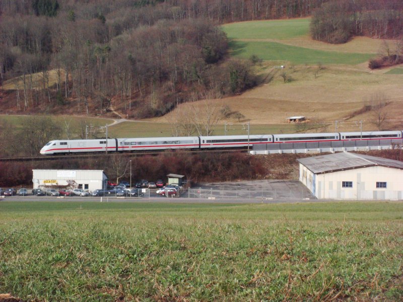 Nachschuss auf den ICE BR 401 auf dem Weg nach Basel am08.01.2008 zwischen Gelterkinden und Sissach.