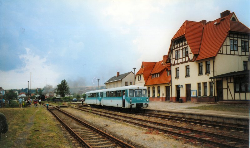 Schienenbus am 2. 7. 2000 in Vacha, ganz hinten die Dampflok der BR 52 vom Sonderzug