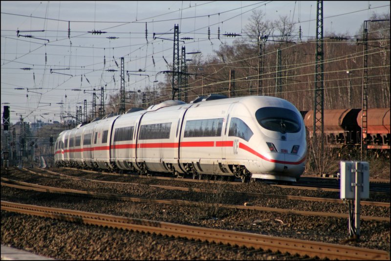 ICE trifft S-Bahn: Ein 403er trifft als ICE (?) bei Bochum-Ehrenfeld den 402 030 "Delitzsch" der als ICE 849, von Düsseldorf nach Berlin-Ostbahnhof unterwegs ist und die S1 von Düsseldorf nach Dortmund. (13.01.2008). Der 403er wurde um 12:30 Uhr aufgenommen aber im Fahrplan bekomme ich keinen passenden Zug. Weis jemand villeicht welcher das sein könnte?