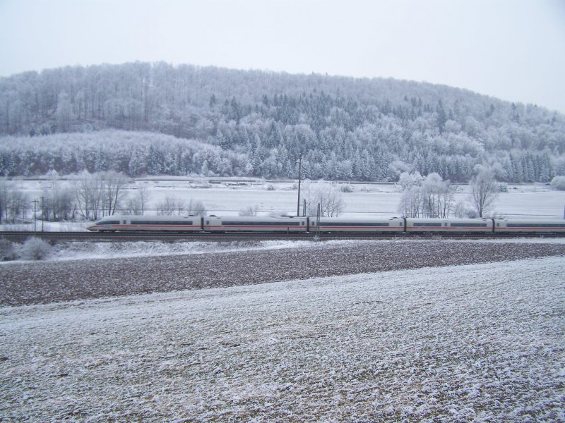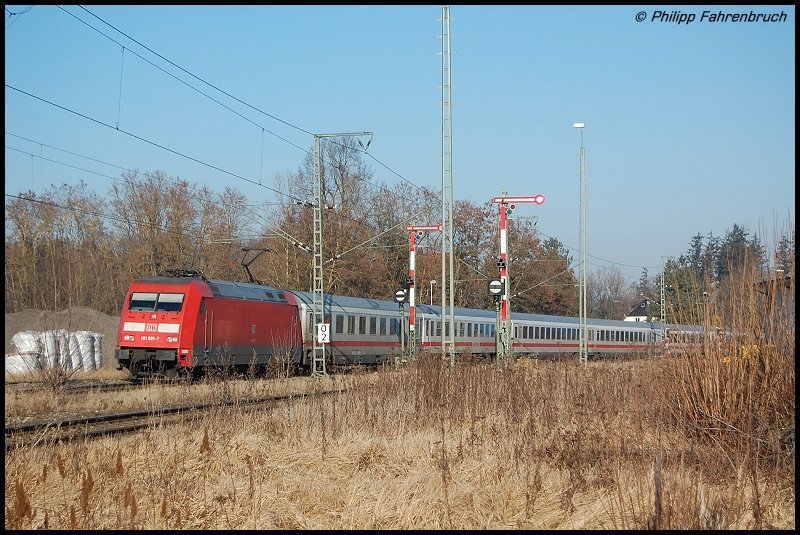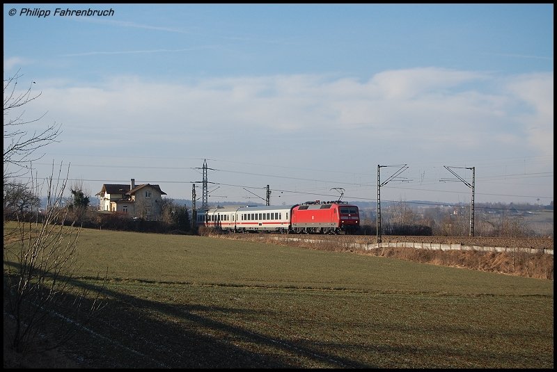 Knapp in die Hose ging dieses unerwartete Wiedersehen mit 101 070-1. Am 02.01.08 kam sie mir völlig unerwartet mit IC 2068 nach Karlsruhe Hbf bei Aalen-Essingen entgegen, für eine Art Strecken-Notschuss reichte es noch.