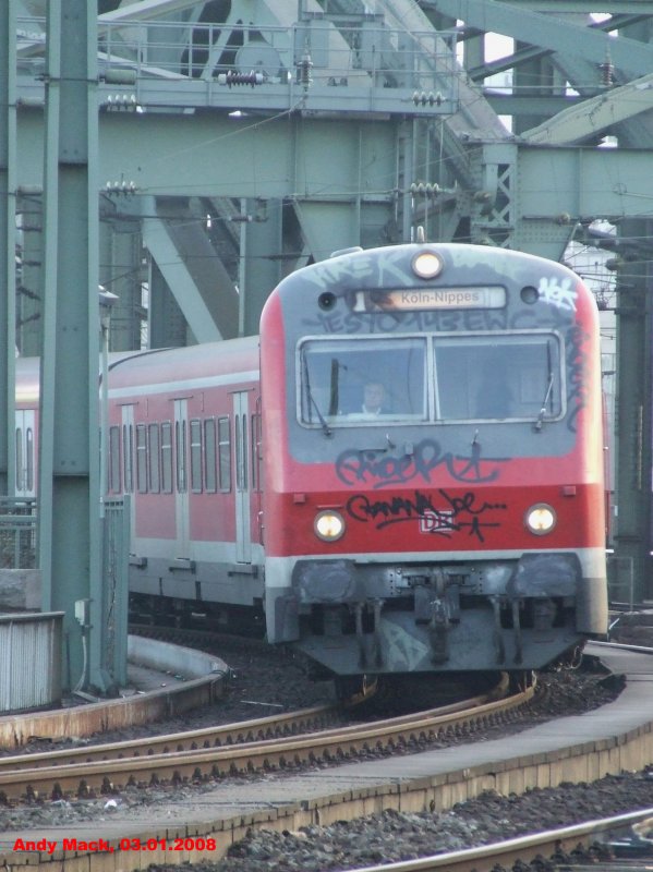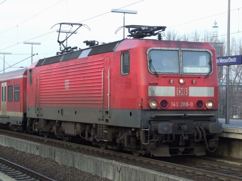 143 288 mit einem S6 S-Bahnzug nach Essen Hbf verlässt Köln Messe/Deutz in Richtung Düsseldorf am 03.01.2008