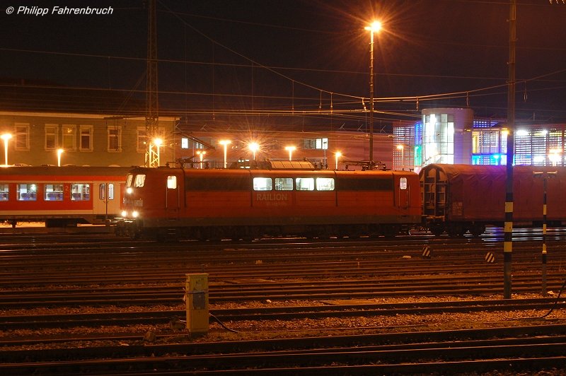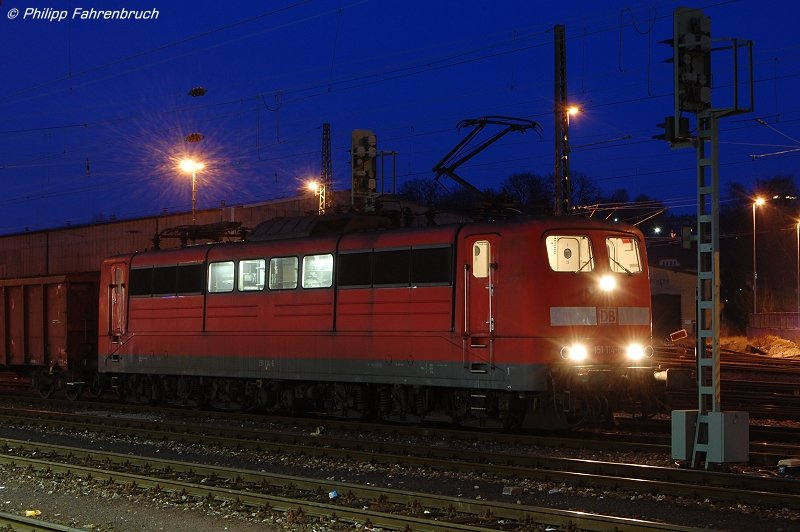 151 114-6, am Abend des 03.01.08 als Lz aus Stuttgart in Aalen auf Gleis 5 angekommen, wird in kürze an FZT 56080 ansetzen und diesen nach Stuttgart-Hafen bringen.