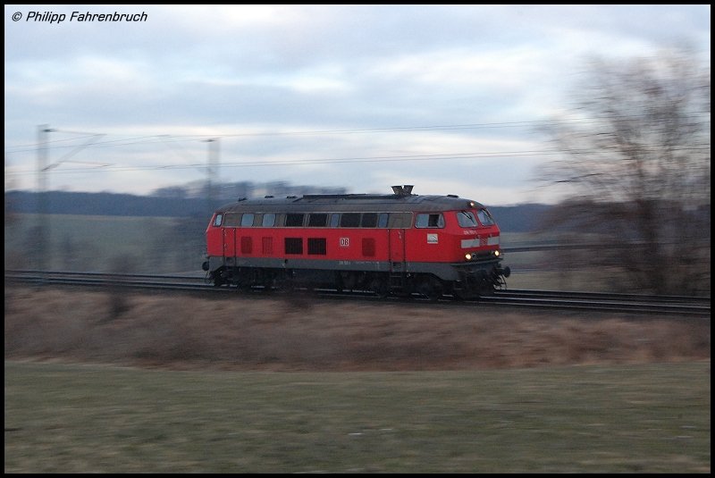 218 193-1 fährt am 04.01.08 als RbZ über die Remsbahn (KBS 786) in Richtung Stuttgart, aufgenommen bei Goldshöfe.
