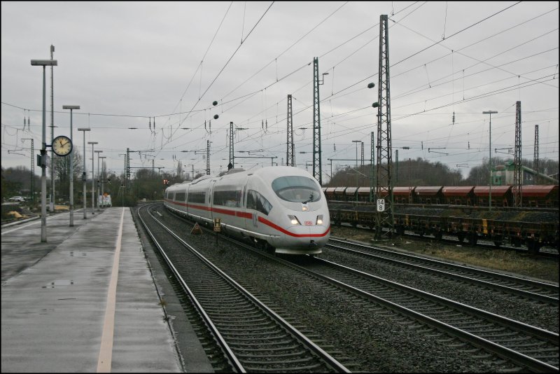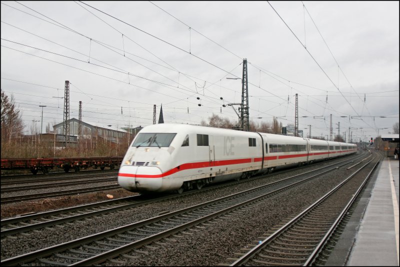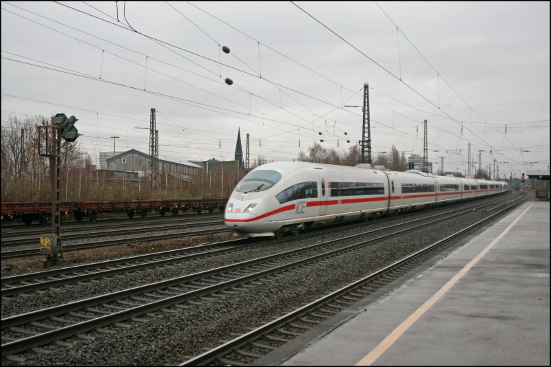 402 040 (?) "Bochum" fährt als InterCityExpress 547, von Düsseldorf nach Berlin-Ostbahnhof durch das Ruhrgebiet Richtung Dortmund. (05.01.2008)